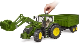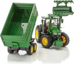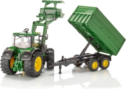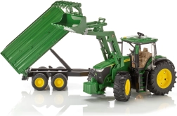Le tracteur est complété par une remorque tandem, qui dispose d'une fonction de basculement et de panneaux latéraux amovibles, permettant un déplacement et un chargement faciles de divers objets. Les enfants seront ravis des détails et possibilités que ce modèle offre.