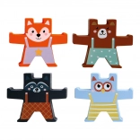 Pimentez la partie en augmentant la difficulté : empilez de manière à ce que deux oursons voisins soient toujours différents. Le jeu d’équilibre favorise la motricité fine, la pensée logique et la concentration.