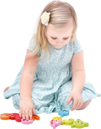 La conception durable en bois massif et les couleurs vives et non toxiques garantissent une longue durée de vie et un jeu en toute sécurité. Les pièces sont suffisamment grandes et faciles à tenir par de petites mains, ce qui permet même aux débutants de réussir le puzzle.