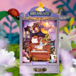 Ce diorama miniature enchanteur vous permet de plonger dans un monde de fantaisie. À l'intérieur du meuble, un éclairage chaleureux crée une profondeur magique de la scène. Un compartiment pratique dans la partie inférieure du meuble permet de ranger de petits objets. L'assemblage inclut le travail avec des pièces en contreplaqué et en carton, faciles à préparer. Les composants électriques sont déjà préassemblés, ce qui facilite l'installation. Seules des ciseaux sont nécessaires, car les autres outils sont inclus dans l'emballage.