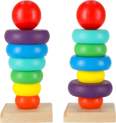 Les jouets en bois, connus pour leur design simple, renforcent la créativité et le développement intellectuel des enfants. La tour empilable colorée offre non seulement du plaisir, mais soutient également le développement de la pensée logique et créative. Empiler les anneaux sur le bâton améliore les capacités motrices et aide à apprendre les couleurs.