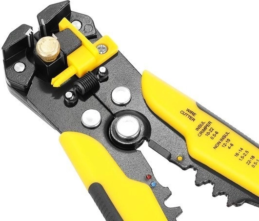 - Dénudage de fils - Insérez le fil dans les mâchoires, pressez fermement les poignées et l'isolation sera facilement retirée. Fonctionne avec des fils de diamètre 0,2 - 6 mm2 (10 - 24 AWG).