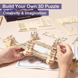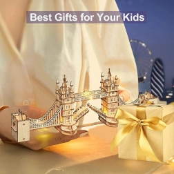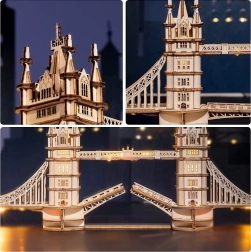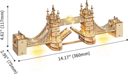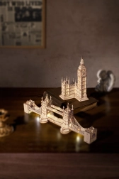 Découvrez l’atmosphère de Londres avec un modèle réaliste du Tower Bridge en contreplaqué de qualité. Les pièces s’emboîtent parfaitement, rendant l’assemblage fluide et plaisant. L’éclairage LED intégré confère au modèle terminé une touche chaleureuse en soirée et met en valeur des détails architecturaux soignés.