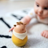Jouet interactif avec un grelot à l’intérieur qui stimule la perception auditive à chaque mouvement. Le mécanisme auto-redressant développe les compétences motrices.