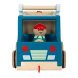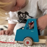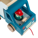 À l’arrière de la benne se trouve une boucle qui permet d’atteler d’autres véhicules et ainsi de stimuler la motricité fine. Le produit présente un design moderne aux couleurs vives et contrastées et est fabriqué en bois naturel, garantissant sa robustesse.