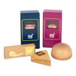 Bois, tissu, plastique (fenêtres transparentes des emballages)