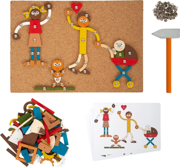 Le petit marteau en bois et les punaises permettent aux enfants d’exercer leur précision et leur motricité fine à travers un jeu amusant.