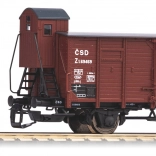 Le modèle de wagon couvert G02 avec cabine de serre-frein à l’échelle TT de la marque Piko est une reproduction fidèle des wagons ČSD de l’époque III. Il se distingue par une impression de grande précision, un détail soigné des portes et du lambrissage en bois ainsi qu’un roulement fluide des bogies. Idéal pour composer des rames thématiques ČSD et enrichir un réseau avec un wagon de fret authentique.