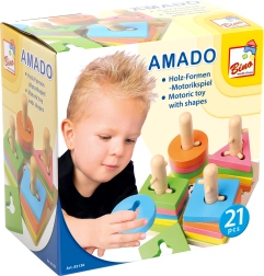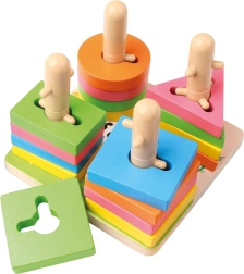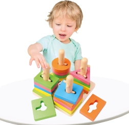 Ce jeu d’enfilage en bois de qualité offre 21 pièces colorées et une base stable avec des chevilles. Grâce aux ouvertures et tiges intelligemment conçues, les enfants exercent le pairage des formes, la reconnaissance des couleurs et la perception spatiale. Les dimensions compactes 15 × 11,5 × 15 cm assurent un rangement facile et un jeu pratique sur une table ou un tapis.