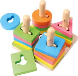 Le jouet est idéal pour un premier pas vers la pensée logique : les enfants doivent aligner les découpes et enfiler correctement les formes. La conception en bois durable et les bords lisses offrent sécurité et longue durée de vie. Parfait pour le jeu autonome comme pour l’apprentissage partagé avec les parents.