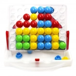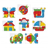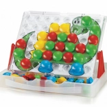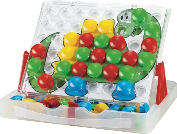 La mosaïque dans une mallette pratique permet aux enfants de créer des images joyeuses selon les modèles fournis ou selon leur propre imagination. La plaque peut être glissée dans des supports et utilisée aussi en position verticale pour un jeu encore plus confortable. De grands pions colorés sont sûrs et faciles à saisir même pour les petites mains.
