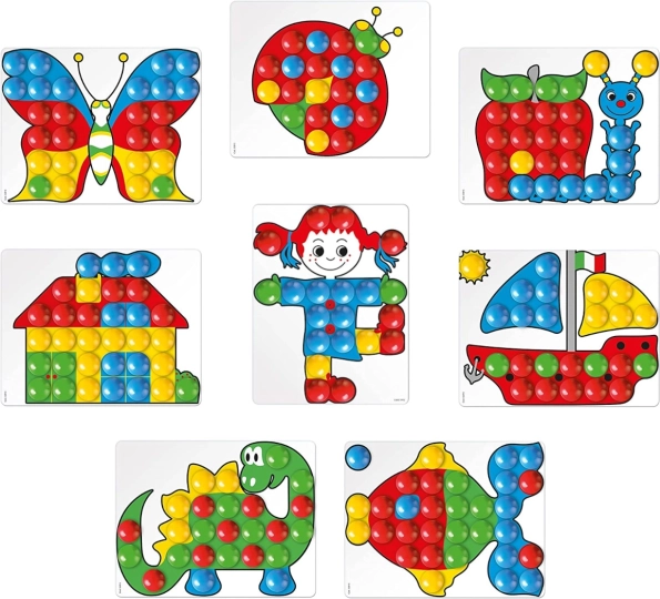Ce jouet éducatif est fabriqué en plastique de qualité, sûr et résistant. Composer la mosaïque a un effet relaxant tout en développant des compétences essentielles : motricité fine, perception visuelle, créativité et pensée logique.