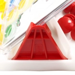 La plaque fait office de couvercle de la mallette, ainsi toutes les pièces restent rangées et le jouet se transporte facilement partout.