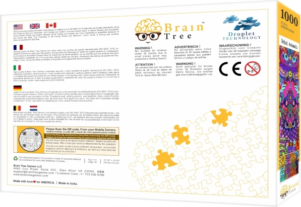 Les puzzles BRAIN TREE Animaux tribaux offrent un motif visuellement captivant, riche en couleurs et en détails, sublimé par une impression premium et une surface mate. Chaque pièce est découpée de manière unique, rendant l’assemblage plus ludique et plus surprenant que les découpes en grille classiques.