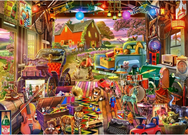 Le puzzle premium Brain Tree offre une scène vivante et détaillée, pleine de jouets, d’instruments de musique et de l’atmosphère rurale d’une grange. La surface mate élimine les reflets et fait ressortir les détails multireliefs les plus subtils, pour profiter du motif sous tout type d’éclairage.