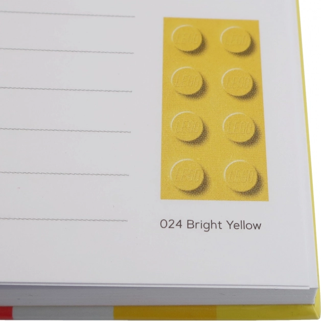 Chaque page lignée comporte l’illustration d’une brique dans une teinte LEGO précise, rendant l’écriture plus agréable et stimulant la créativité.