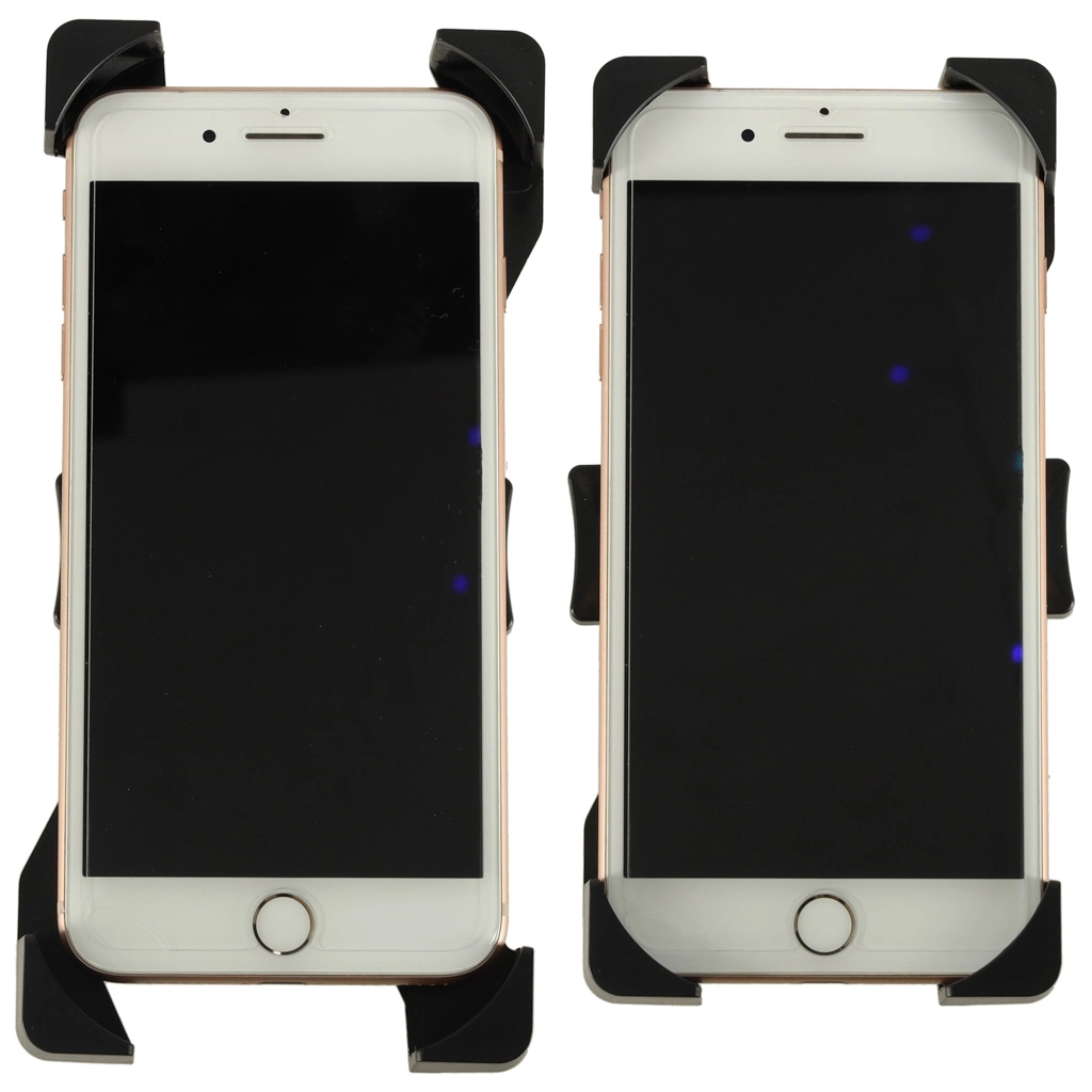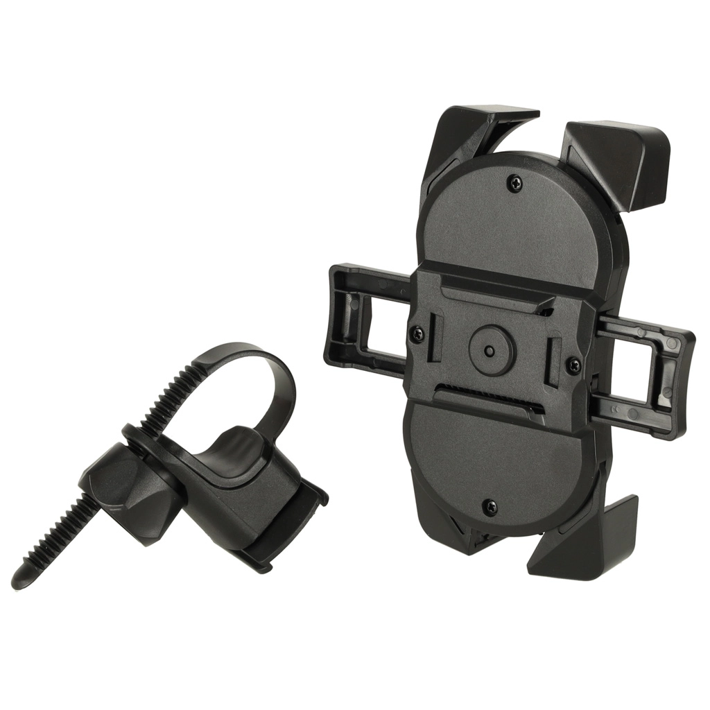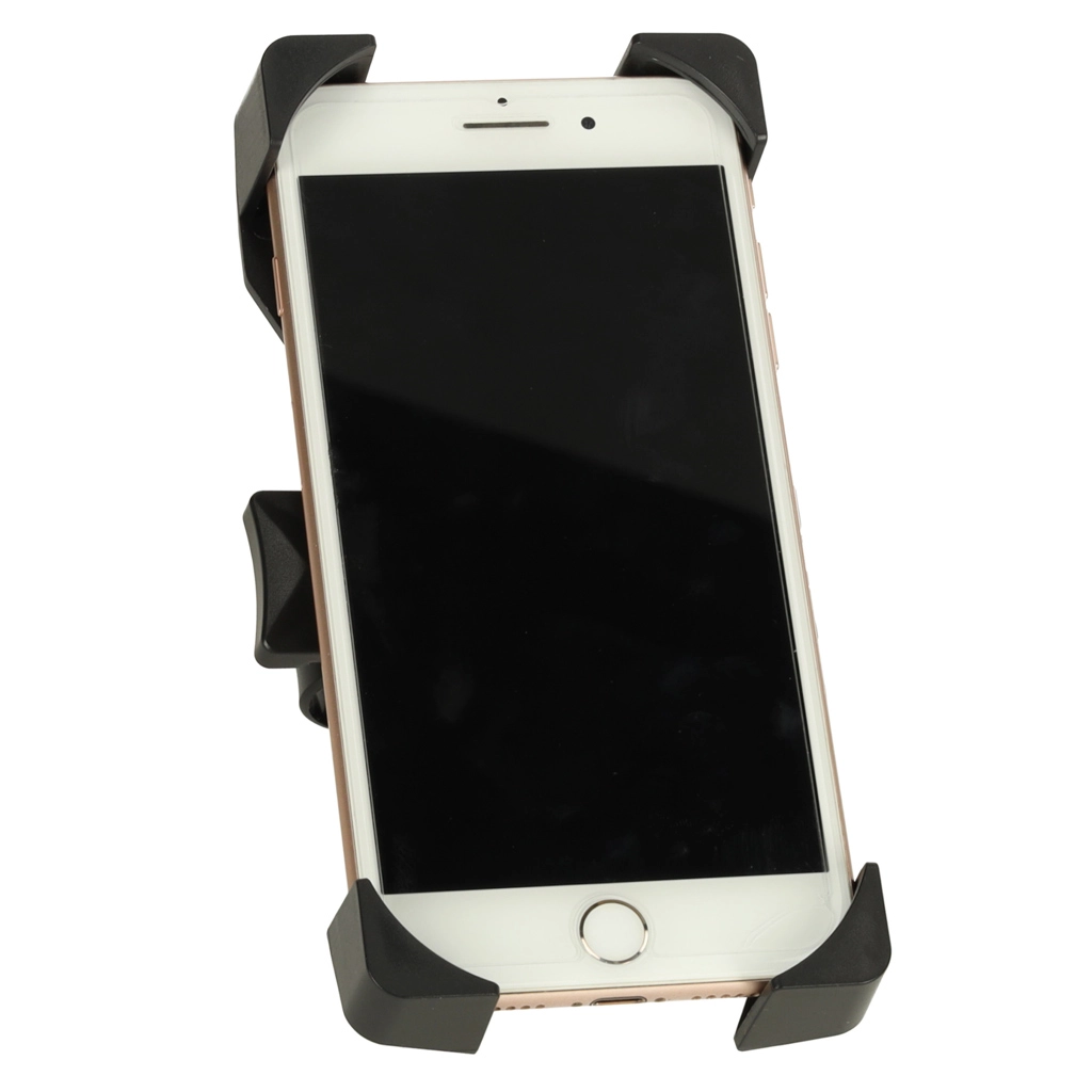 Quatre points d’ancrage aux coins et une construction solide en plastique résistant maintiennent l’appareil en place en toute sécurité, même sur terrain irrégulier. La large compatibilité (d’environ 12 × 6 cm à 18 × 9 cm) couvre la plupart des smartphones et GPS compacts.