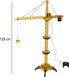 Grue de chantier télécommandée qui ravira les petits bâtisseurs avec des fonctions réalistes et des heures de jeu. Avec une hauteur allant jusqu’à 128 cm, une tourelle pivotante et un crochet fonctionnel, elle soulève et abaisse facilement les charges à l’aide de la télécommande fournie. Le jeu est rehaussé par des effets lumineux et sonores, et le montage se fait facilement à la maison.