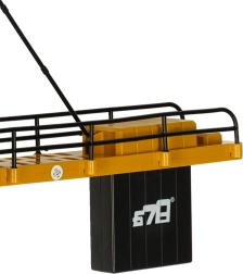 Cette grue RC jaune et noire est un excellent choix pour les enfants qui aiment les engins de chantier. Conçue pour un montage à domicile, elle offre un contrôle réaliste de la rotation de la flèche, ainsi que la montée et la descente de la charge dans le bac fourni. L’ambiance de jeu est assurée par des effets lumineux et sonores, rendant l’expérience proche d’un véritable chantier.