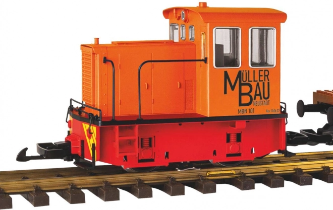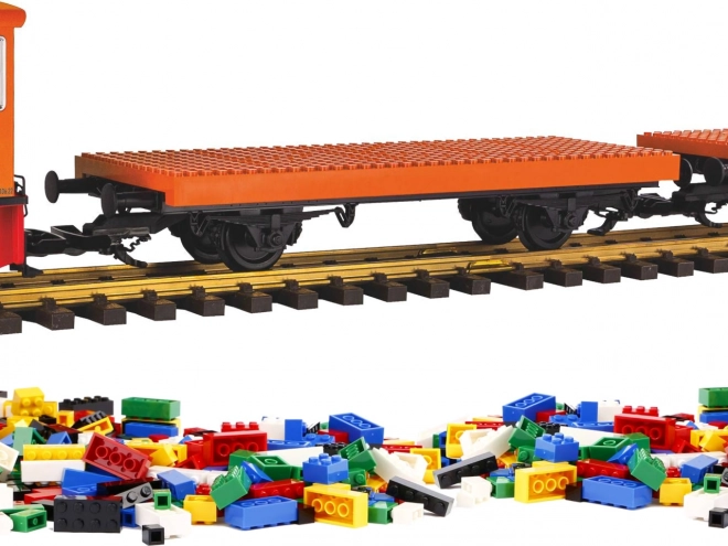 Le coffret de départ comprend un circuit de base avec un train de marchandises composé d’une locomotive diesel GE et de deux wagons plats à deux essieux. La locomotive est commandée sans fil à l’aide d’une télécommande de poche et fonctionne sur piles.