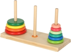 Ce jeu de logique intemporel entraîne patience et concentration : l’objectif est de déplacer tous les disques de la première tige vers la dernière de façon à les réempiler du plus grand au plus petit – on ne peut déplacer qu’un disque à la fois et un disque plus petit ne doit jamais être placé sous un plus grand. Cela paraît simple, mais met au défi enfants comme adultes.