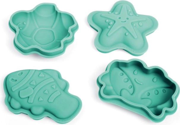 Le set comprend quatre moules en silicone différents en forme de crabe, de poisson, d’étoile de mer et de tortue pour stimuler au maximum la créativité de vos enfants.