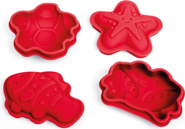 Vivez un divertissement sans fin à la plage avec ces moules en silicone rouges en forme de créatures marines de la marque Bigjigs Toys. Ils permettent de créer diverses œuvres de sable et se rangent facilement.