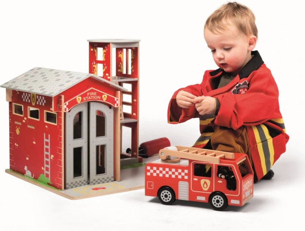 Le set comprend un extincteur en bois, un talkie-walkie et un mégaphone – tout pour des missions de pompier authentiques et des histoires sans fin.