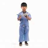 Le costume de médecin pour enfants de BIGJIGS TOYS transforme chaque jeu en mission de sauvetage. Il comprend un t-shirt bleu et un pantalon à scratchs pour un habillage et déshabillage faciles, ainsi que de riches accessoires : stéthoscope en bois, pochette/planche médicale pour les notes, thermomètre, montre de poche, seringue et pansements. Le costume est fabriqué en coton et polyester et peut être lavé en machine.