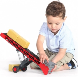 Convoyeur pour enfants Bruder est un excellent jouet pour les petits bâtisseurs et agriculteurs. Grâce au mécanisme de réglage en hauteur et à la bande mobile, il permet de transporter facilement de petits objets, comme des matériaux en vrac ou des bottes de paille. Le tout est fabriqué avec des matériaux de haute qualité en Allemagne.
