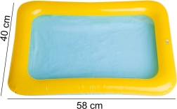 Compact bac à sable gonflable de 56 × 40 cm qui offre aux enfants un espace de jeu sûr et propre avec du sable, à la maison comme en extérieur. Léger, facile à transporter et prend un minimum de place une fois dégonflé. Fabriqué en PVC résistant, avec une valve classique pour un gonflage et un dégonflage rapides. Le produit est disponible en différentes couleurs, envoyées aléatoirement. Idéal pour construire des châteaux, le jeu sensoriel et sans désordre grâce aux bords surélevés.