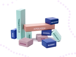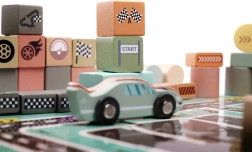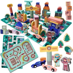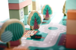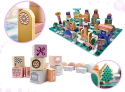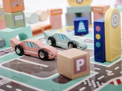 Chaque ville a besoin de rues et de voitures, et cet ensemble contient des puzzles qui, une fois assemblés, créent une surface de jeu avec une piste. Vous y trouverez divers éléments tels que des bâtiments, des personnages et des véhicules. Les blocs sont en couleurs pastel, ce qui stimule non seulement la perception visuelle de l'enfant, mais aussi sa pensée logique et non conventionnelle.