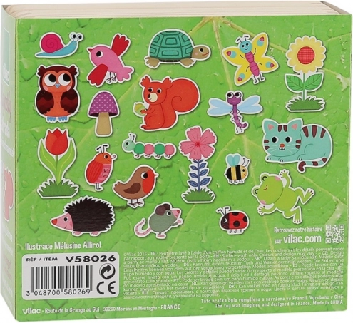 Découvrez les possibilités créatives avec les magnets en bois Vilac à thème jardin. Ces pièces robustes et écologiquement fabriquées offrent des possibilités illimitées pour des jeux et des décorations. Profitez de belles illustrations colorées qui peuvent décorer le réfrigérateur ou la chambre des enfants.