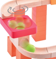 Assemblez, testez et explorez ! La piste à billes TRIX Carrousel et tourbillon propose un système d’assemblage astucieux garantissant une piste toujours solide et stable. Les éléments de base sont en bois-plastique durable, tandis que les rails sont majoritairement en bois massif avec une finition lisse. La combinaison attrayante de couleurs vives et de bois naturel séduit enfants et adultes.
