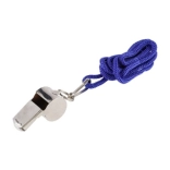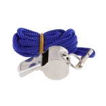 Ce sifflet en métal de couleur argentée brillante est conçu pour une projection sonore claire, ce qui le rend adapté à une utilisation sportive ou d'urgence. Il est livré avec un cordon textile bleu, permettant un port confortable autour du cou. Idéal pour les entraîneurs, les arbitres, mais aussi pour les événements familiaux.