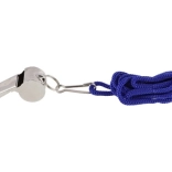 Sifflet en métal avec cordon textile bleu est idéal pour une utilisation dans le sport ou comme outil de sécurité. Pratique et facilement accessible, il sera toujours à portée de main autour du cou.