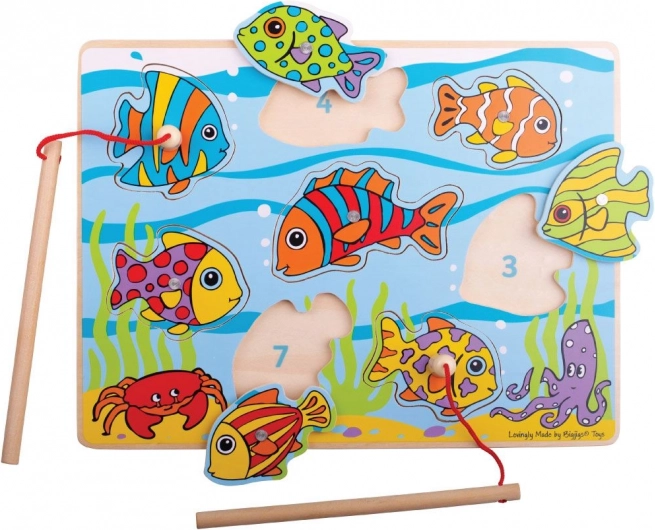 - Coffret complet : planche en bois, canne magnétique et poissons – au total 10 pièces