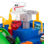 Partez pour une course palpitante pleine de surprises. La piste interactive avec obstacles, pont-levis et engrenages mettra à l’épreuve la dextérité et la pensée logique des enfants. La prise en main est facile et amusante – à l’aide de boutons et d’éléments rotatifs, vous faites avancer les voitures sur le parcours et accomplissez les missions des services de secours.