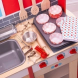 Ce coffret de pâtisserie complet comprend tout l’équipement dont un petit chef a besoin pour ses premières réalisations. Inclus : plaque de cuisson, manique, moule à cake, fouet, rouleau en bois, bol, jeu de cuillères doseuses et six emporte-pièces.