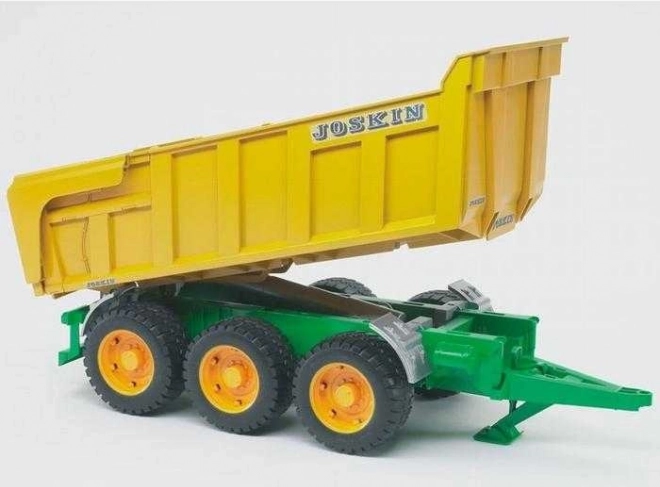 Solide remorque basculante JOSKIN BRUDER à l’échelle 1:16 avec des fonctions réalistes : benne à grand angle de basculement avec bras télescopique, porte arrière à ouverture automatique et configuration à trois essieux pour une excellente stabilité. Parfaitement compatible avec les tracteurs BRUDER 20xx, 21xx, 30xx ainsi qu’avec les Unimog. Fabriquée en Allemagne en plastique de qualité.