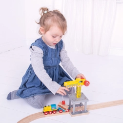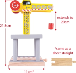 La grue peut facilement être combinée avec d'autres circuits de train en bois disponibles sur le marché, ce qui en fait un jouet universel.