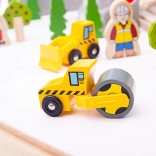 Ce circuit de train en bois richement équipé emmène les enfants de la gare, à travers de hauts ponts et des voies suspendues, jusque dans la montagne, d’où le train dévale un col en passant près du village, des arbres et du verger. Grâce au pont tournant, on change aisément de direction, et la grue fonctionnelle permet de charger la marchandise dans les wagons. Idéal pour le jeu à plusieurs, ce set stimule l’imagination, la motricité fine et la coordination.
