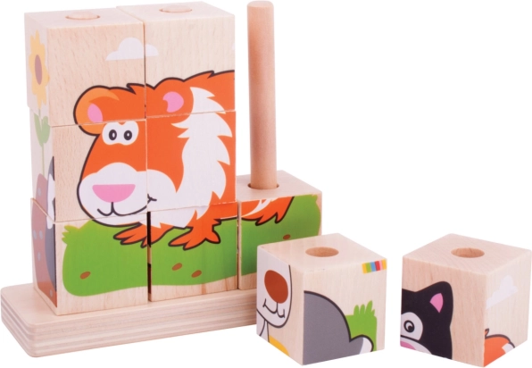 Les cubes d’empilage en bois Bigjigs Baby sont un excellent choix pour les premiers puzzles et jeux d’assemblage. Les enfants entraînent la prise en main, l’habileté des doigts et la perception visuelle en recherchant les bonnes faces et en les enfichant sur les chevilles. Les illustrations colorées d’animaux encouragent le jeu répété et améliorent la concentration.