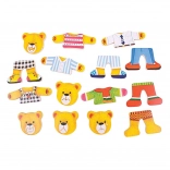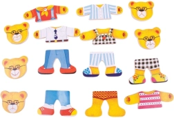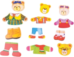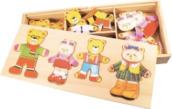 Habillez Monsieur Ours, Madame Ourse et leurs deux oursons avec une multitude de tenues et explorez les émotions grâce aux têtes interchangeables aux expressions variées. Les pièces en bois sont agréables en main, faciles à assembler et encouragent le jeu créatif ainsi que l’apprentissage par le plaisir.