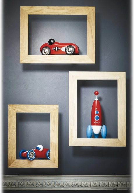 Découvrez le charme de la voiture de course historique rouge de la marque Vilac. Cette voiture est fabriquée en bois laqué avec des détails métalliques et des roues en caoutchouc, assurant un mouvement fluide. Elle est conçue à la fois pour jouer et comme élément décoratif dans les intérieurs des enfants et des adultes.