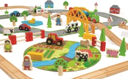 Description détaillée du produitCe circuit de train en bois avec route rurale est la parfaite combinaison de circuit de train et de voitures, imitant le monde réel du transport. Grâce aux ponts et passages à niveau, vos enfants entreront dans un monde plein d'aventures amusantes. Tout est complété par des accessoires locaux comme une ferme, des bâtiments et des arbres qui embellissent les environs.