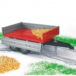 Remorque basculante rouge Bruder est une copie fidèle d'une remorque à deux essieux qui animera chaque scène de jeu. Son principal avantage est la plateforme basculante et les parois latérales et arrière ouvrantes qui permettent une manipulation facile de la charge.