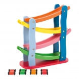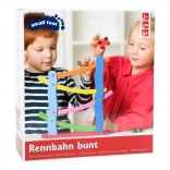 Piste de course en bois pour enfants est un jouet coloré qui offre des heures de divertissement. À l’aide de petites voitures colorées, les enfants développent leur motricité et apprennent à reconnaître les couleurs lors des descentes rapides sur des pistes solides en bois.