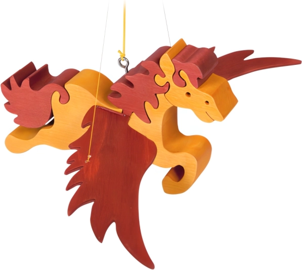 Charmante décoration en bois pour chambre d’enfant – un cheval volant qui commence à « battre des ailes » lorsqu’on tire sur la ficelle. Bois poncé à la main, conception sûre et suspension facile font de cette décoration suspendue un accessoire ravissant au-dessus du lit ou dans le coin jeu.