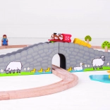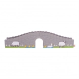 Conçu en gris, rappelant un pont en pierre avec des illustrations d'animaux de ferme pour une expérience authentique.